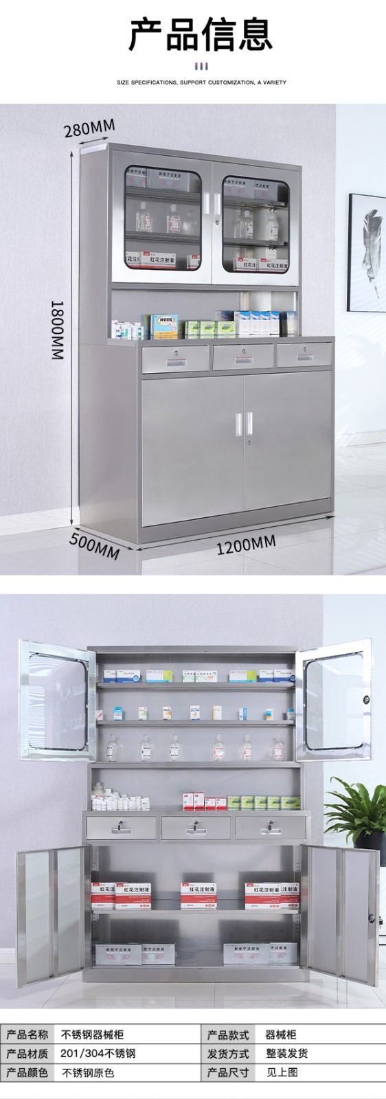 不銹鋼西藥柜1200寬